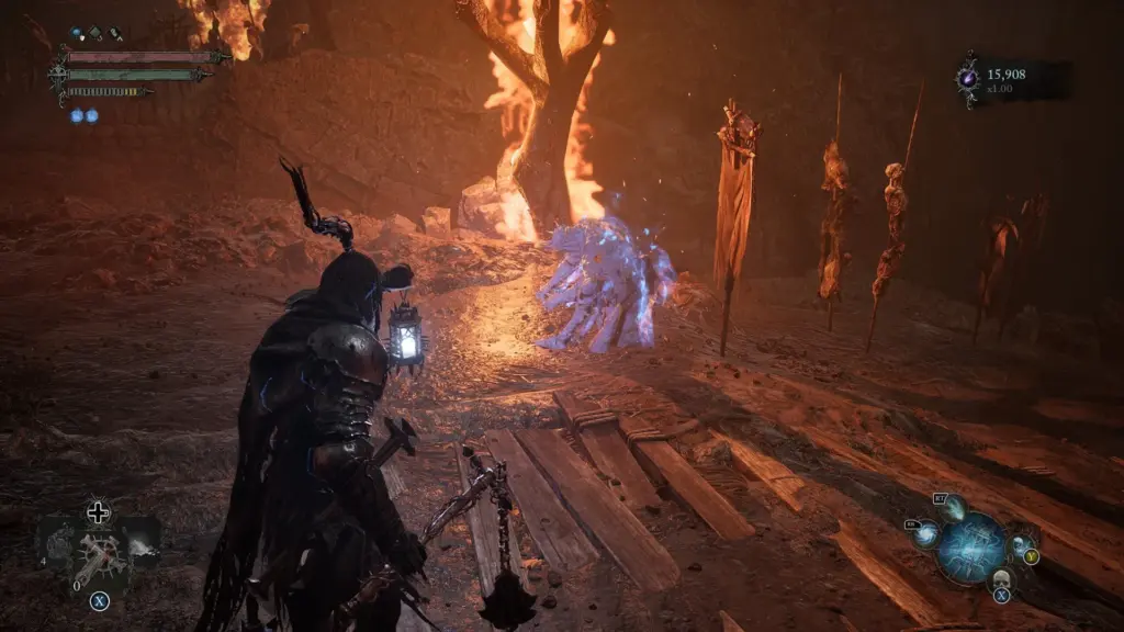Curto, denso e respeitoso com seu tempo. Você não tem corpo próprio; habita carcaças de guerreiros caídos. A grande sacada é a habilidade de “endurecer”. A qualquer momento, no meio de um ataque ou de uma esquiva, você vira pedra. O golpe do inimigo ricocheteia, abrindo a guarda dele. Essa mecânica muda completamente o fluxo da batalha. É um experimento estético e mecânico que deu muito certo.