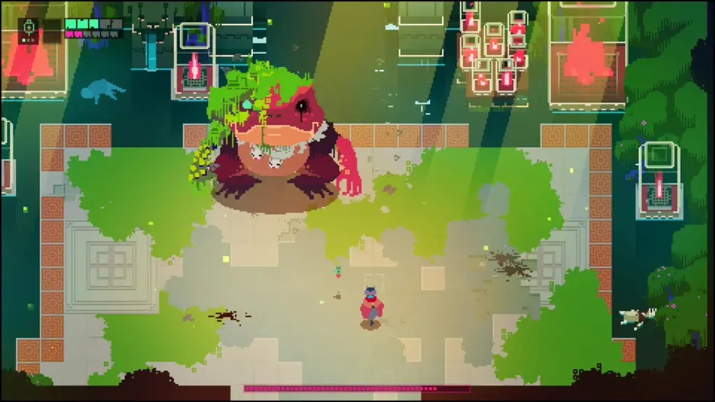 Cores neon, sintetizadores rasgados e uma doença terminal. O Drifter tosse sangue enquanto corta inimigos com uma espada de luz. O combate é baseado em dashes ultra-rápidos e tiros precisos. Não existe uma palavra de diálogo; a narrativa é visual e críptica. A dificuldade escala de forma brutal. Você vai morrer muitas vezes, mas vai querer voltar só para ver aquele mundo vibrar mais uma vez.
